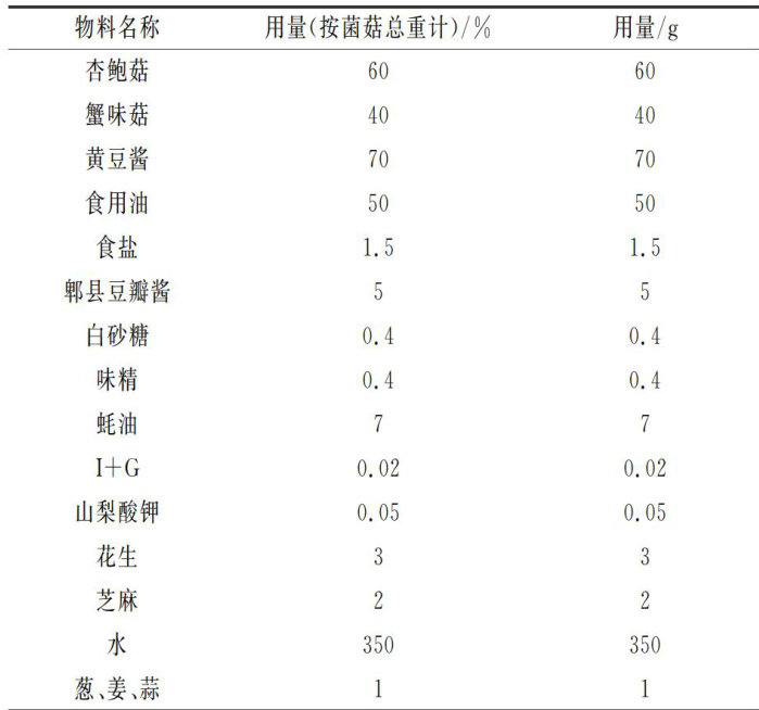 摘要:以杏鲍菇、蟹味菇为主要原料,黄豆酱、食用油、食盐等为辅料研制一种用于预拌土豆粉的菌菇酱。先通过单因素试验探究蟹味菇、黄豆酱、食用油和食盐的用量对菌菇酱感官品质的影响,再采用模糊数学感官评价结合Box-Behnken响应面试验确定菌菇酱的最优配方,最后测定菌菇酱的理化和微生物指标并初步探索该菌菇酱在拌土豆粉中的应用效果。结果表明,以 100g 菌菇总重为基准,当蟹味菇、黄豆酱、食用油和食盐的用量分别为菌菇总重的 40.5%.70%.46.6%.1.5% 时感官品质最好。此工艺条件下,菌菇酱的感官评分为89.3分,酸价、过氧化值、亚硝酸盐含量和固形物含量分别为 1.84mg/g.0.11mg/g. 2.23mg/kg.68.24% ,菌落总数为 270CFU/g ,大肠菌群未检出,均符合产品标准。将该菌菇酱用于预拌土豆粉中, 60min 后土豆粉仍能保持较好的质构品质。