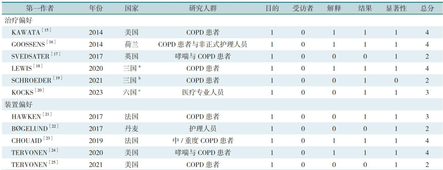【摘要】背景慢性阻塞性肺疾病(COPD)疾病负担沉重,不同治疗方案的属性不同,影响患者的依从性,进而影响治疗效果,离散选择试验既能确定影响患者选择的重要因素(属性),又能确定患者最为看重的属性,以及各属性间的权衡程度,已广泛应用于医药卫生领域。目的回顾与评估离散选择试验在COPD患者对治疗与装置偏好研究文献,以期为国内开展COPD患者健康偏好相关研究提供参考。方法在Webof Science、PubMed、中国知网、维普网、中国生物医学文献数据库、万方数据知识服务平台检索利用离散选择试验测量COPD患者健康偏好的文献,使用PREFS评估清单进行文献质量评估,对研究中出现属性及所属维度进行分析讨论。结果最终纳入11篇文献,均来自欧美发达国家,属性的设定因研究目的及对象的不同而存在显著差异。针对治疗偏好,疗效、便利性、治疗负担、风险和患者特征包含属性的数量分别占 29% 、 29% 、 20% 、 11% 和 11% ,COPD患者尤为偏好疗效和风险维度的属性,其次是治疗负担和患者特征,便利性维度关注度较低;针对吸入装置偏好,特征设计、装置使用和药物搭配包含属性的数量分别占 36% 、 32% 和 32% ,COPD患者尤为偏好特征设计与药物搭配维度的属性,其次是装置使用,文献质量相对一般。结论各维度的纳入属性频率与患者最为偏好的维度之间不呈正比,尤其是治疗方案中对便利性维度的偏好最低;目前我国仍未有离散选择试验在COPD中的应用研究,今后应立足我国实际开展更多相关研究,为COPD治疗的改善提供依据。