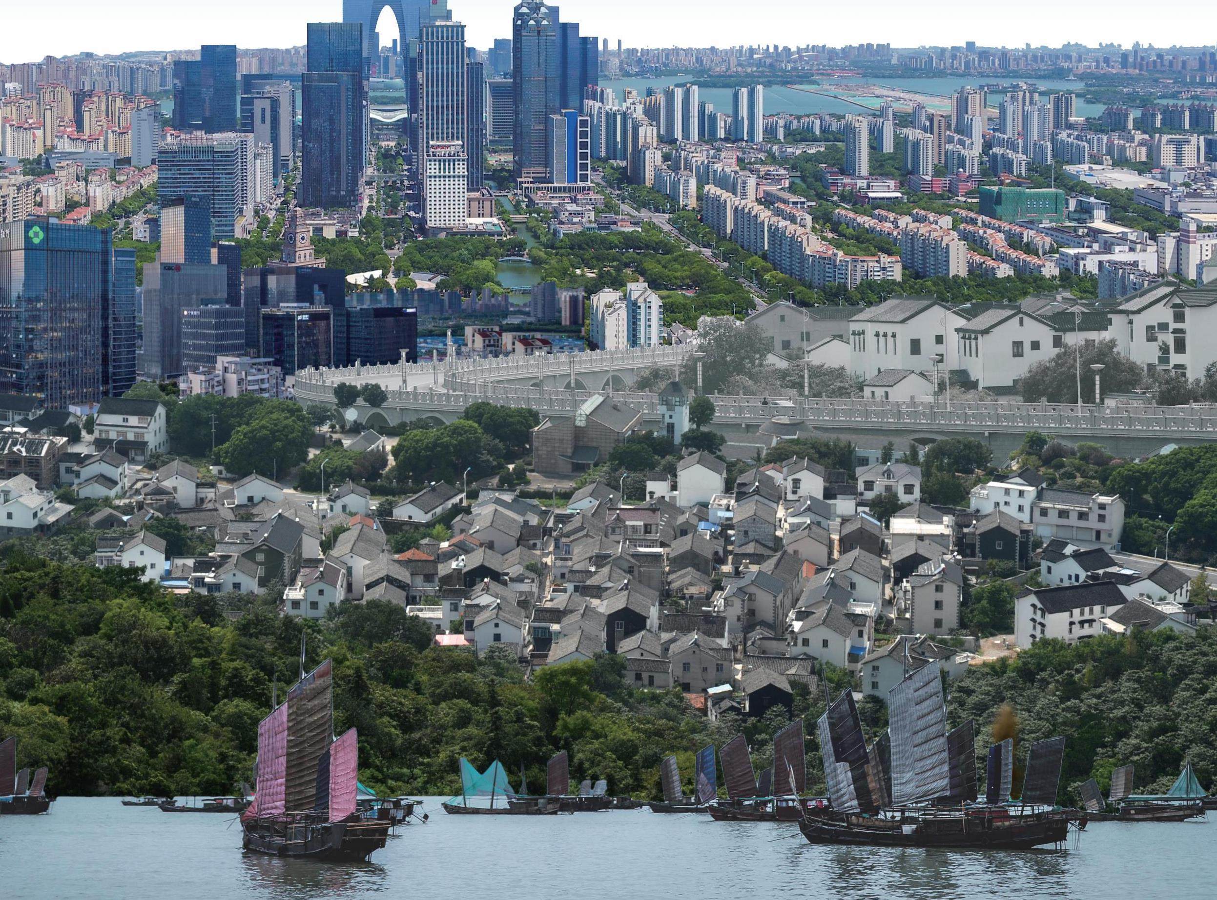 苏州,这座有着2500余年历史的城市,在改革开放后的四十余年的光阴里,完成了一场静默而壮丽的蜕变。当人们站在金鸡湖畔,远眺园区那鳞次栉比的摩天大楼,玻璃幕墙在阳光下闪烁着冷冽的光芒;又或是漫步平江路,看小桥流水,听吴侬软语,很难不惊叹于这座城市如何在现代与传统之间找到了完美的平衡点。浮筑与水墨,在这里不是对立,而是共生;不是割裂,而是对话。 20世纪90年代初,苏州工业园区还是一片农田与水塘