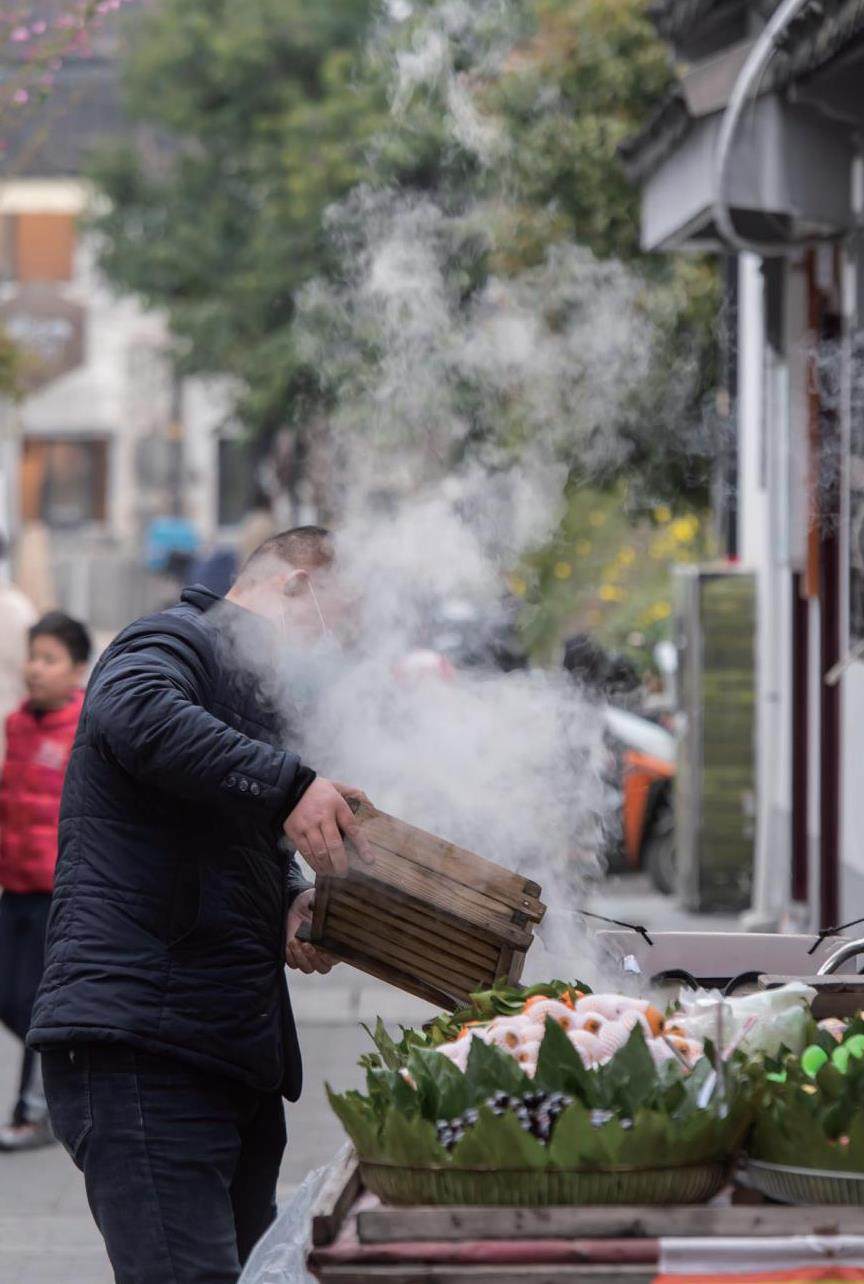 印象派画家应该多逛逛苏州的菜市场。 煊煊红的番茄、生青碧绿的吴江香青菜、雪雪白的剥皮茭白、金灿灿的玉米……天南海北的风味与色彩交织在一起,将生活分解成无数个小色点,色点并置、排列、混合,让餐桌和生活都展现出乔治·修拉画作的秩序感与和谐感。 以往,在菜场里只有早晨才能吃到热腾腾的食物,如今,无论是在名为市集的网红菜场,还是焕新升级的邻里中心,基本上都能全天候吃到苏州各类地方小食。摊点的雾