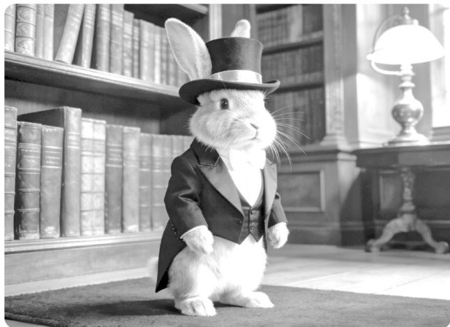 彼得潘有一只大兔子,名字叫彼得。这名字是彼得潘起的,他觉得这样才像它的主人。彼得却不这么认为,它从不觉得自己是一只宠物。事实上,它喜欢戴一顶深蓝色礼帽,穿一身深蓝色燕尾服,还随身带着一个小小的、金色的八音盒。它总是昂首挺胸地迈着步子走,浑身淡灰色的毛富有光泽,看起来就像个绅士一样。 “彼得,你又要去哪儿啊?”彼得潘又叫它了,他明知道它不会说话。 彼得迈着步子不急不慌地走着,走出门去。它有自己的