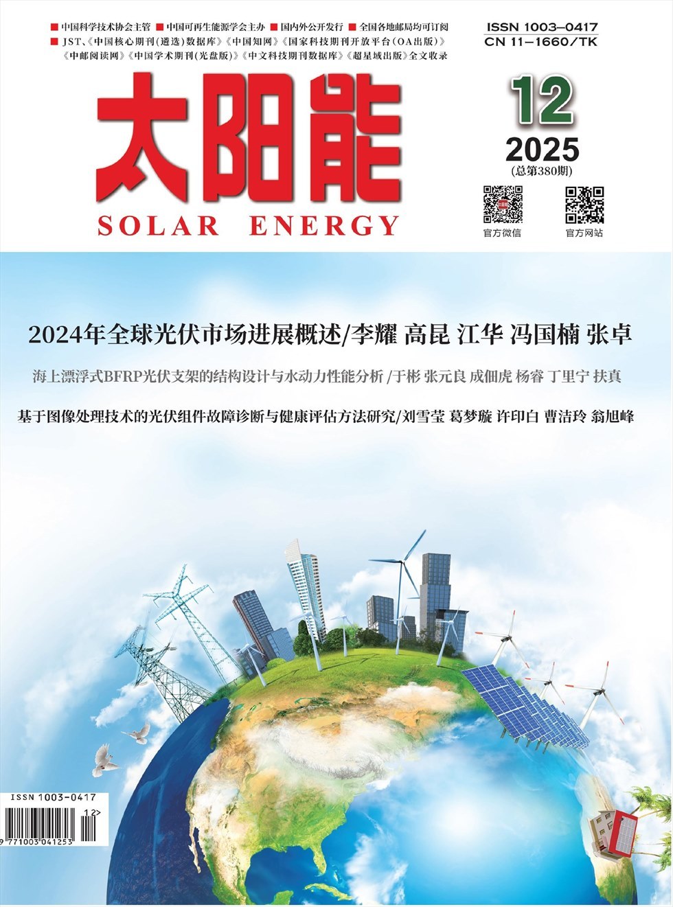 《太阳能》创刊于1980年,月刊,是由中国科协主管,中国可再生能源学会主办,《太阳能》杂志社有限公司出版,国内外公开发行的国家级可再生能源专业科技杂志。内容定位于“广义太阳能”,办刊宗旨为“加强学术交流,推动太阳能科技创新,促进实现太阳能产业化、市场化应用发展”。
