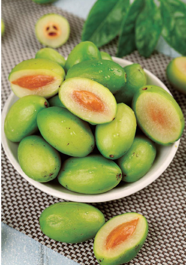 在我的家乡广西合浦县,黄金罗蒙的别名有很多,比如罗芒、檬、龙蒙、六蒙子、黄山竹、野山竹、广西山竹、岭南山竹、黄金果、粘牙果、黄牙果等,而我最喜欢叫它山罗蒙。别看这种水果个头小,本事却不小,可以说全身都是宝。 山罗蒙树通常生长在深山里,寻找和采摘都不易,据说曾祖父当年上山采摘时还遇到过山猪和毒蛇。它的树型并不高大,披针形的叶子细长而柔美,像一把小剑。这些叶子四季常青,闪着亮绿色的光泽,看上去生机勃