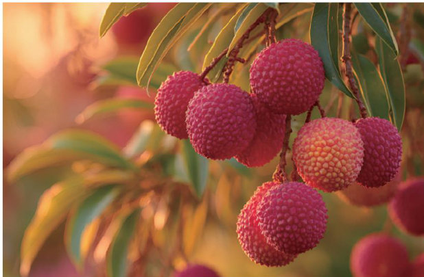 荔枝是深受人们喜爱的一种水果,在我国历史上,很多文人墨客也喜欢荔枝,并以它为题材,写出了不少脍炙人口的作品。 唐代的白居易在《荔枝图序》中写道:“荔枝树形团团如帷盖,叶如桂,冬青;华如桔,春荣;实如丹,夏熟。朵如葡萄,核如枇杷,壳如红繒,膜如紫綃,肉莹白如冰雪,浆液甘酸如醴酪。大略如彼,其实过之。若离本枝,一日而色变,二日而香变,三日而味变,四五日外,色香味尽去矣。”当时,荔枝乃稀罕之物,见过它