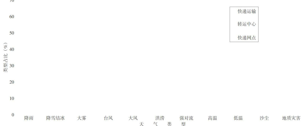 摘要:文章从快递物流行业最关注的时效性要素出发,结合快递延误行业数据,开展恶劣天气对快递各环节造成时效延误的影响分析。经研究,快递延误的发生出现在三个环节,即快递运输环节、转运中心环节和快递网点环节。每个环节均有可能受到恶劣天气影响,造成快递链条的整体时效延误。降雨、降雪结冰、大雾、大风、台风、高温等都是产生快递物流时效延误的重要天气类型。恶劣天气不仅影响上游干线运输环节产生时效延误,延误还会延续影响到转运中心和快递网点的最末梢环节,产生新的叠加时效延误。