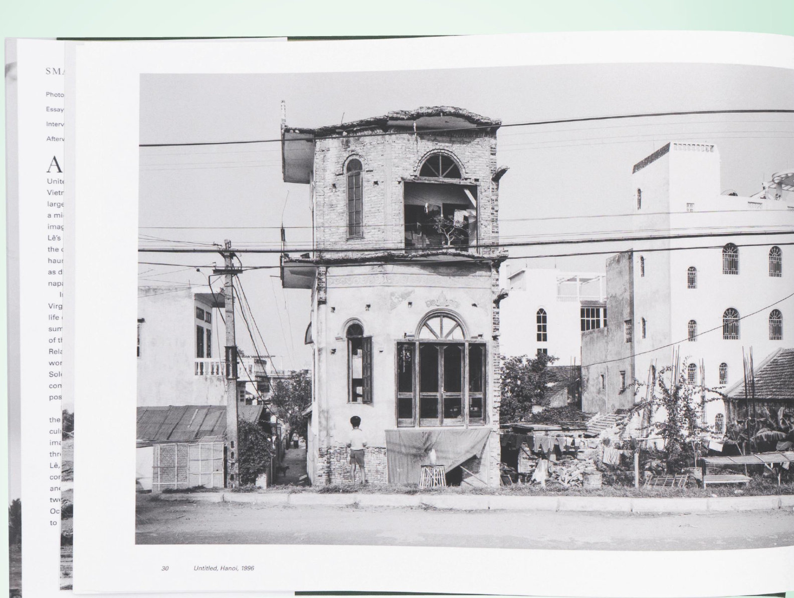 街道边残破的住宅似乎在无声中坚持着战争发生过的证据,成年人们生活照旧,一批新生儿在逐渐长大 不止是纸上演兵 越南裔美国摄影师黎安美(An-MyLe)最著名的作品"小型战争"总能给人留下深刻印象:大画幅拍摄的、黑白的、战争场面的、与军事行动有关、也越南战争有关...但印象止于此,仿佛这位摄影师是一位战争场面的爱好者,或者可能想要用静态摄影实现电影的效果,甚至可能是钟情于猎奇。“小型战争究