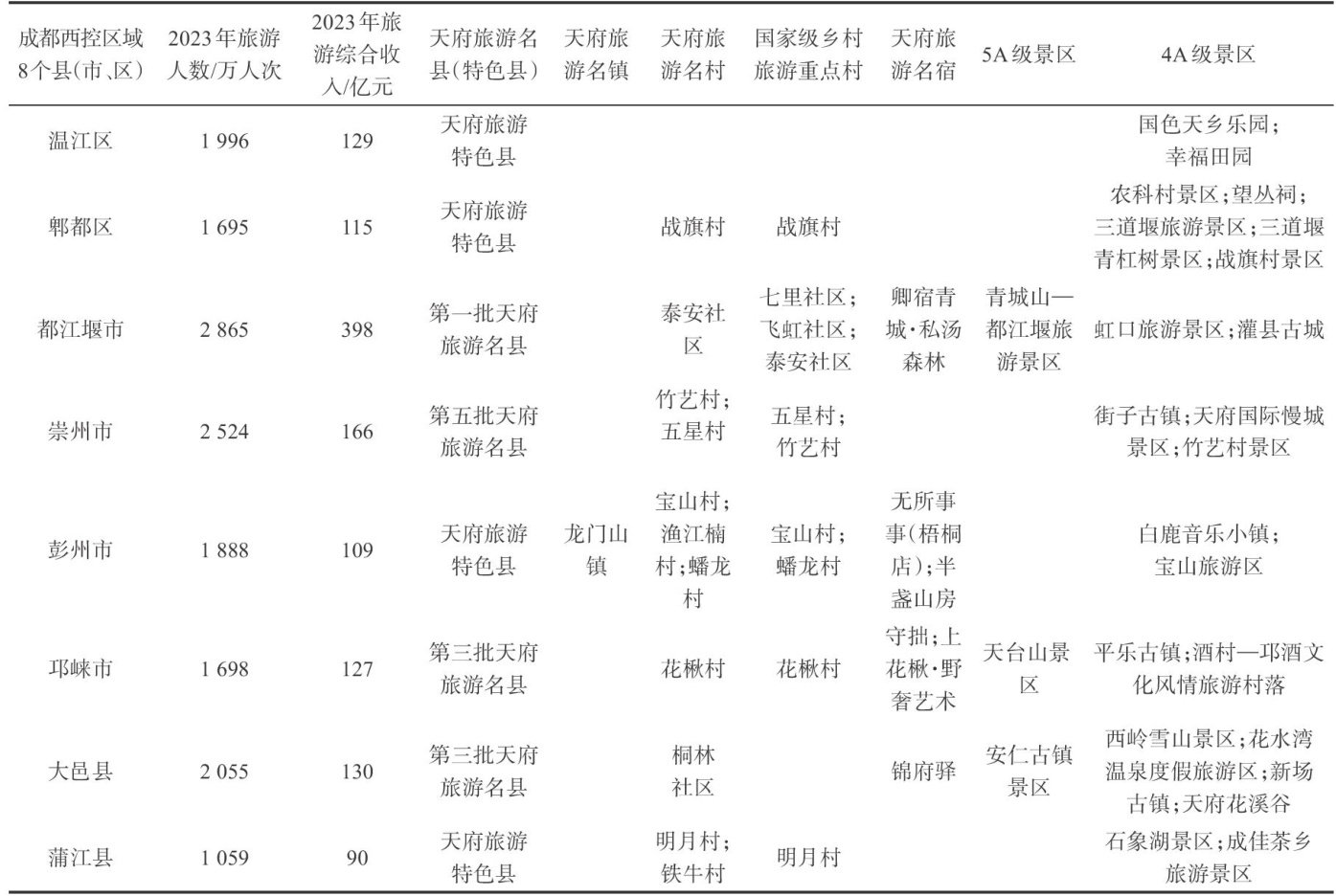 摘要:发展乡村旅游是推进温江区乡村全面振兴的重要路径。近年来,成都市温江区乡村旅游发展迅速,呈现点位多、业态丰富、开发主体多元化等特征,但仍面临诸多发展困境。研究在分析温江区乡村旅游面临的机遇与挑战的基础上,探寻了温江区乡村旅游提升发展的路径:打造特色IP,形成差异化竞争;争创旅游名牌,树立产品标杆;挖掘传承地域文化,夯实发展根基;数字赋能,提升消费体验。