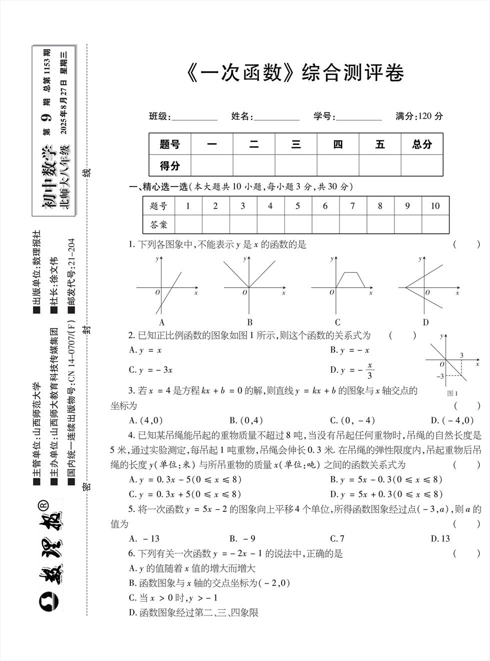 《数理报》是由山西省教育厅主管,山西师范大学主办,面向全国发行的中小学生理科教学辅导类报纸