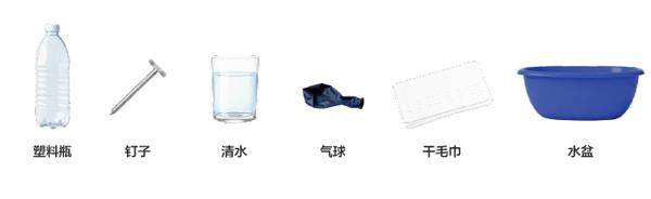 实验原理 气球与干毛巾摩擦时会发生电子转移使气球带上负电荷成为带电体水流是导体当带电的气球靠近水流时会感应出水流中的正电荷(静电感应现象)带电体具有吸引轻小物体的性质正负电荷相互吸引就会拉动水流向气球方向弯曲从而让水流“拐弯”这一实验直观展现了“静电感应”和“带电体的吸引作用” 实验材料 实验步骤 1、用钉子在塑料瓶侧壁距离底部5厘米的位置扎一个小孔(孔径约2毫米),用手指堵住小孔
