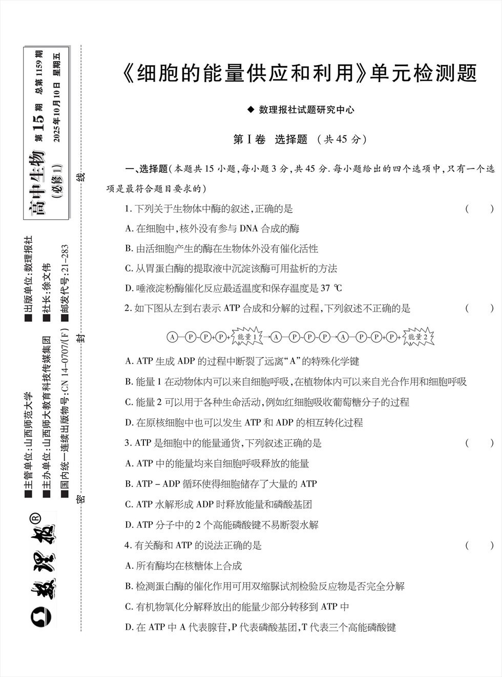 数理报·高一生物人教版