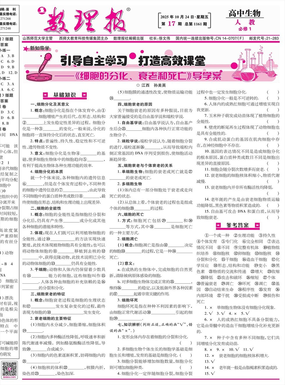 数理报·高一生物人教版