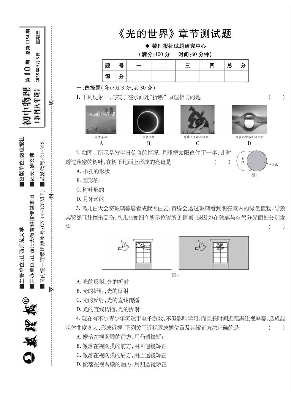 《数理报》是由山西省教育厅主管,山西师范大学主办,面向全国发行的中小学生理科教学辅导类报纸