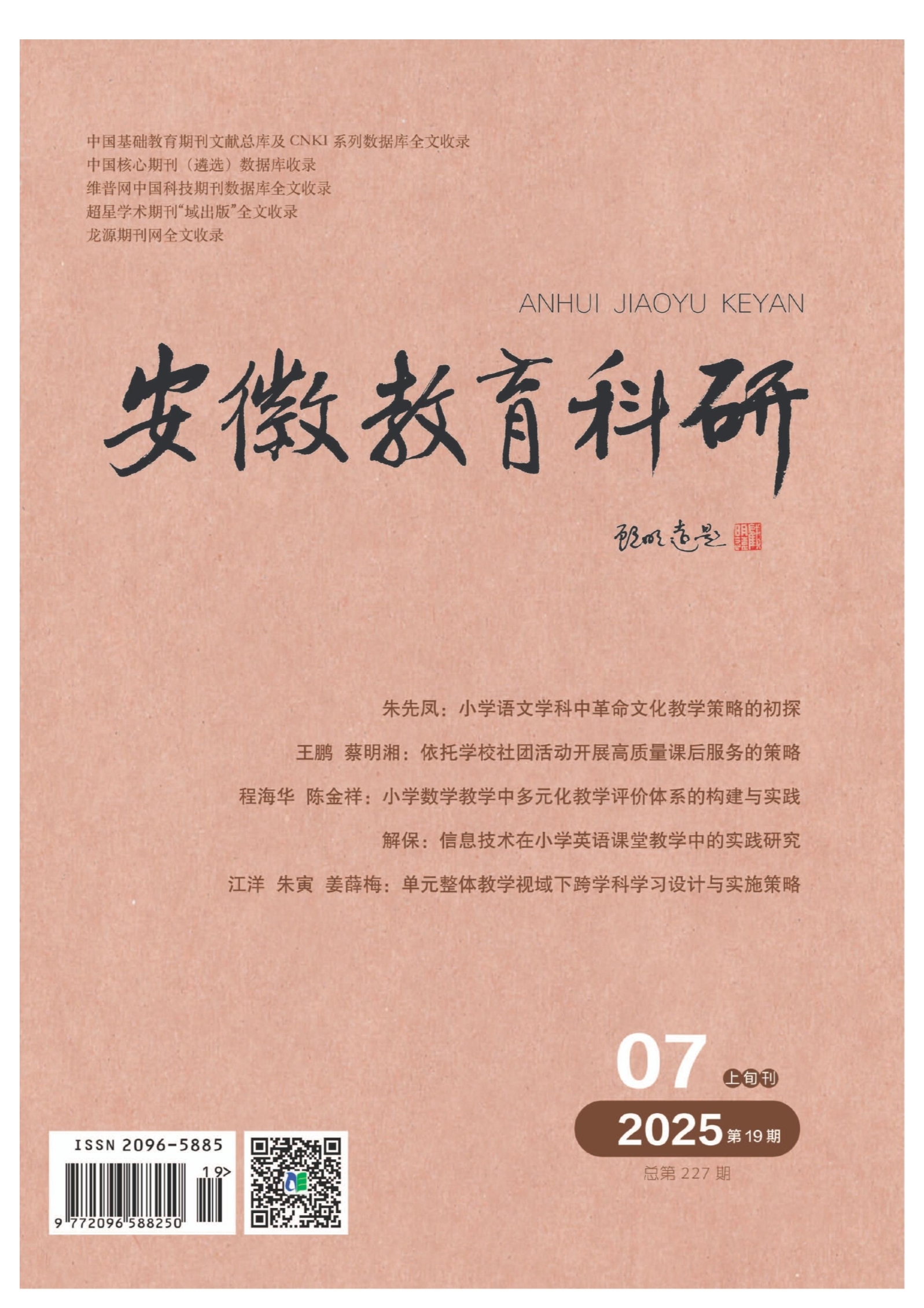 摘要:中草药文化作为中华优秀传统文化的杰出代表,承载着中华民族数千年的智慧与民族精神,是滋养小学生爱国情感的珍贵文化沃土。本研究以合肥市金湖小学的中草药种植活动为研究样本,精准剖析科学教育与劳动教育在活动中的深度融合机制,以及如何凭借此活动架构起培育学生爱国情感的完整体系。通过深入阐释爱国情感的丰富内涵,紧密结合活动的实践细节,全方位展示培育学生爱国情感的系统性策略与创新性方法,旨在为小学阶段的爱国主义教育提供实践范例,进一步推动科学教育与劳动教育的深度融合,助力学生实现全面发展。