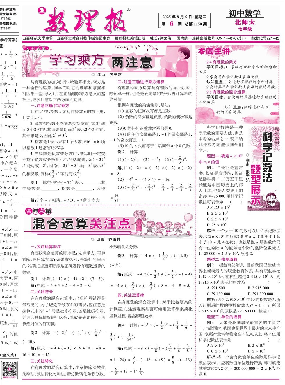 数理报·七年级数学北师大版