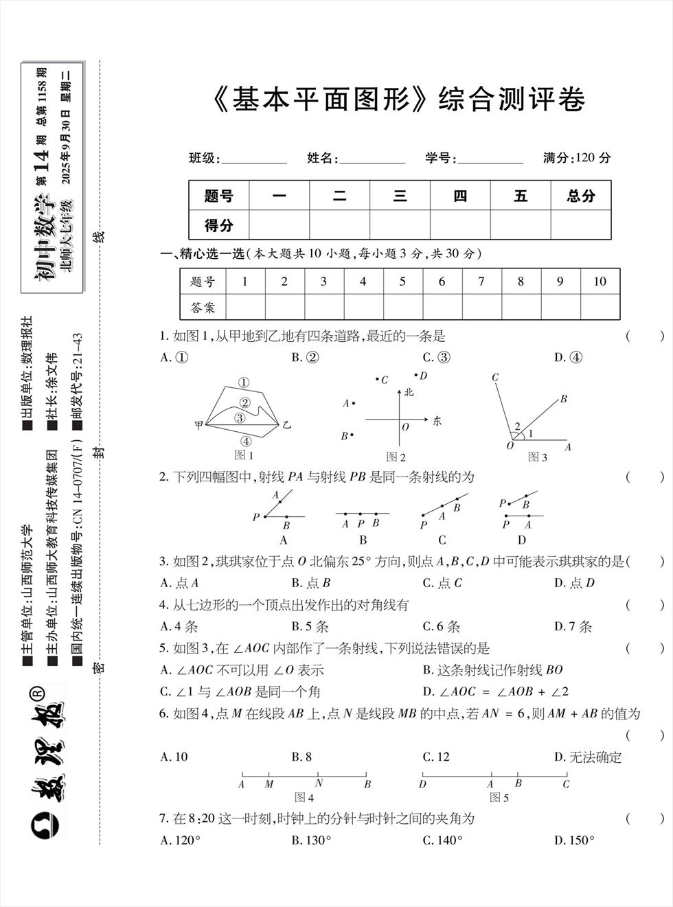 数理报·七年级数学北师大版