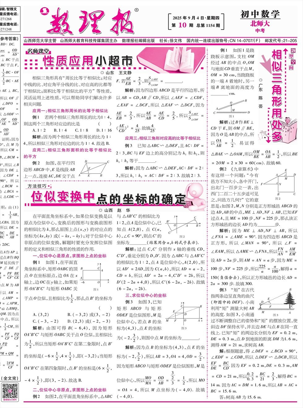 《数理报》是由山西省教育厅主管,山西师范大学主办,面向全国发行的中小学生理科教学辅导类报纸