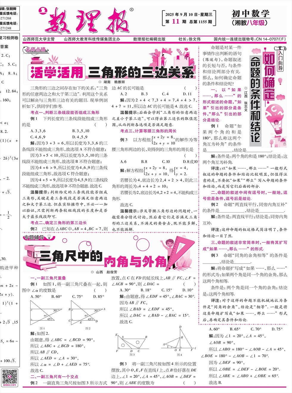 《数理报》是由山西省教育厅主管,山西师范大学主办,面向全国发行的中小学生理科教学辅导类报纸