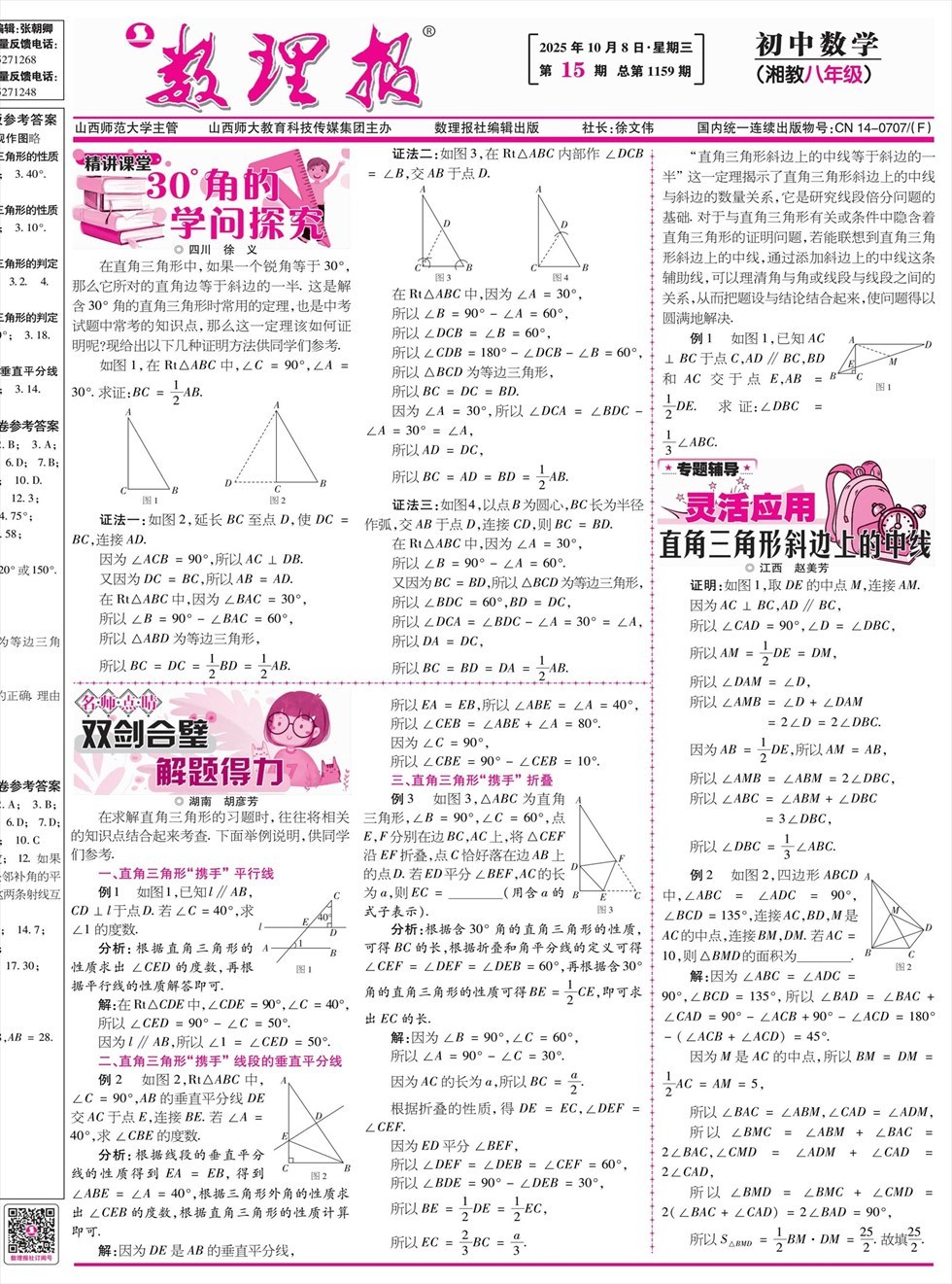 《数理报》是由山西省教育厅主管,山西师范大学主办,面向全国发行的中小学生理科教学辅导类报纸