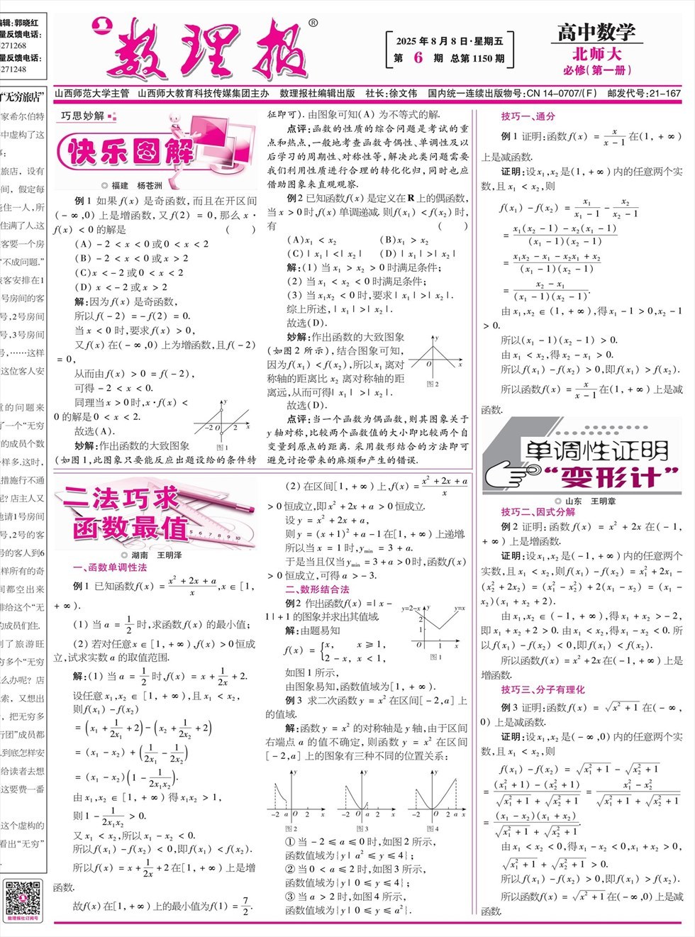 《数理报》是由山西省教育厅主管,山西师范大学主办,面向全国发行的中小学生理科教学辅导类报纸