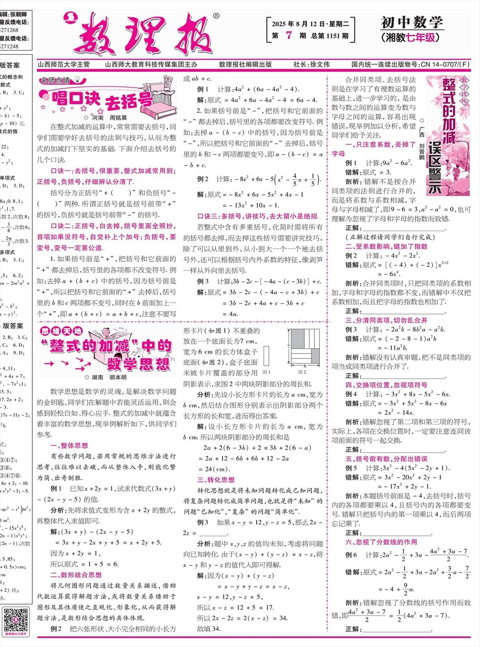 数理报·七年级数学湘教版