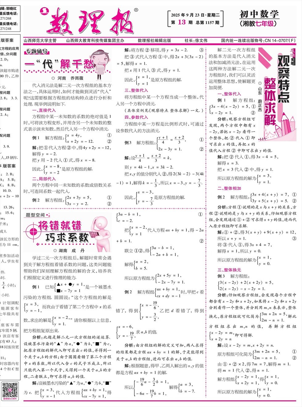 数理报·七年级数学湘教版