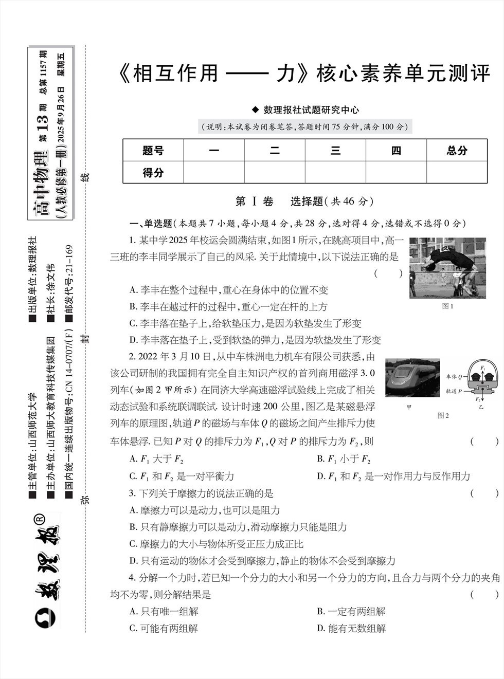 数理报·高一物理人教版