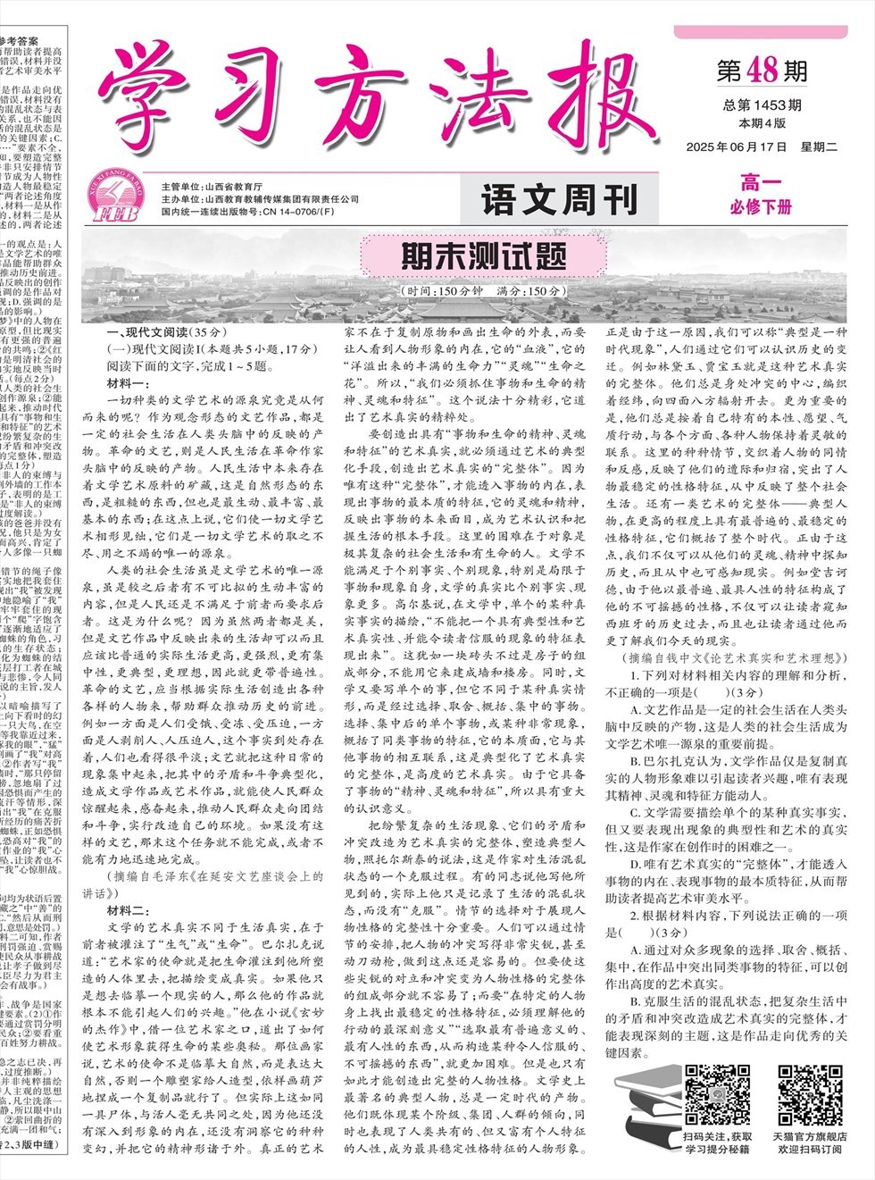 学习方法报·语文新教材高一必修上