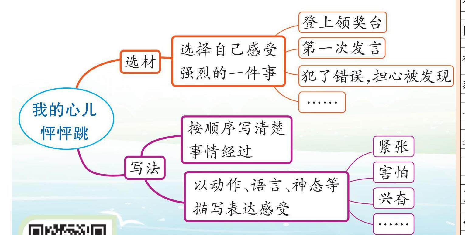 同学们,哪件事情让你的心儿怦怦跳呢?它是在什么情况下发生的?如何写出自己的感受呢?我们来看看吧。 名段精选 我跨进书店门,暗喜没人注意,我踮起脚尖,使矮小的身体挨蹭过别的顾客和书柜的夹缝,从大人的腋下钻过去。哟,把短发弄乱了,没关系,我到底挤到里边来了。在一片花绿封面的排列队里,我的眼睛过于急忙地寻找,反而看不到那本书的所在。从头来,再数一遍,啊,它在这里!原来不是在昨天的位置了。 我庆幸它