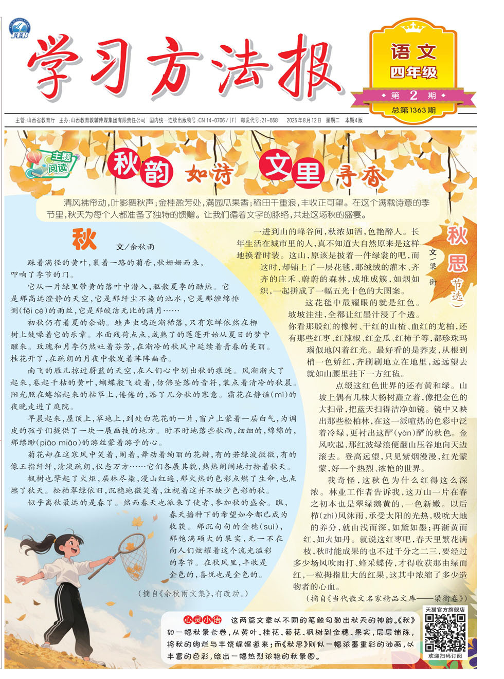 清风拂帘动,叶影舞秋声;金桂盈芳处,满园瓜果香;稻田千重浪,丰收正可望。在这个满载诗意的季节里,秋天为每个人都准备了独特的馈赠。让我们循着文字的脉络,共赴这场秋的盛宴。