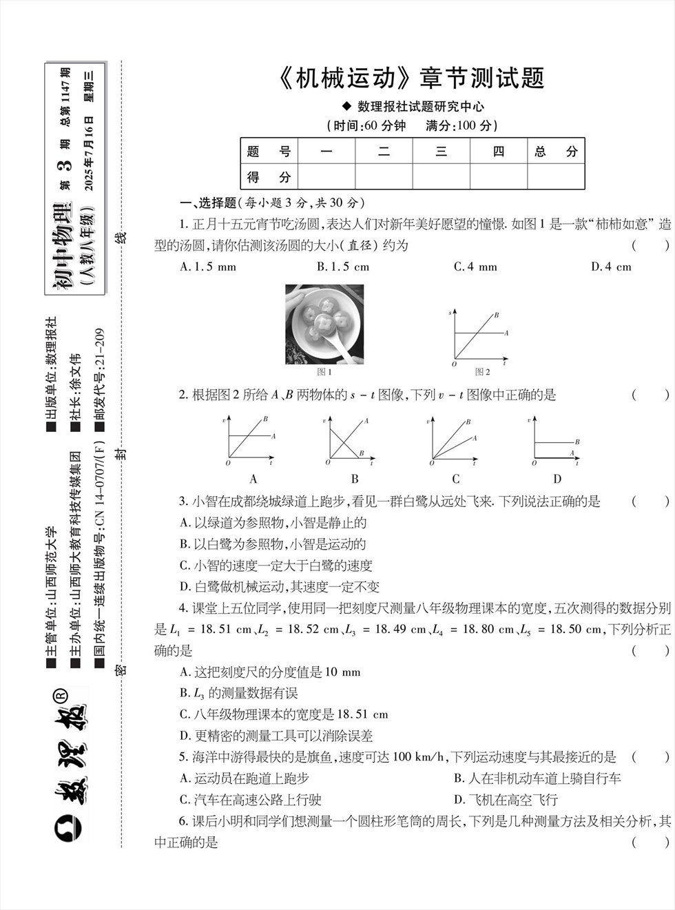 数理报·八年级物理人教版