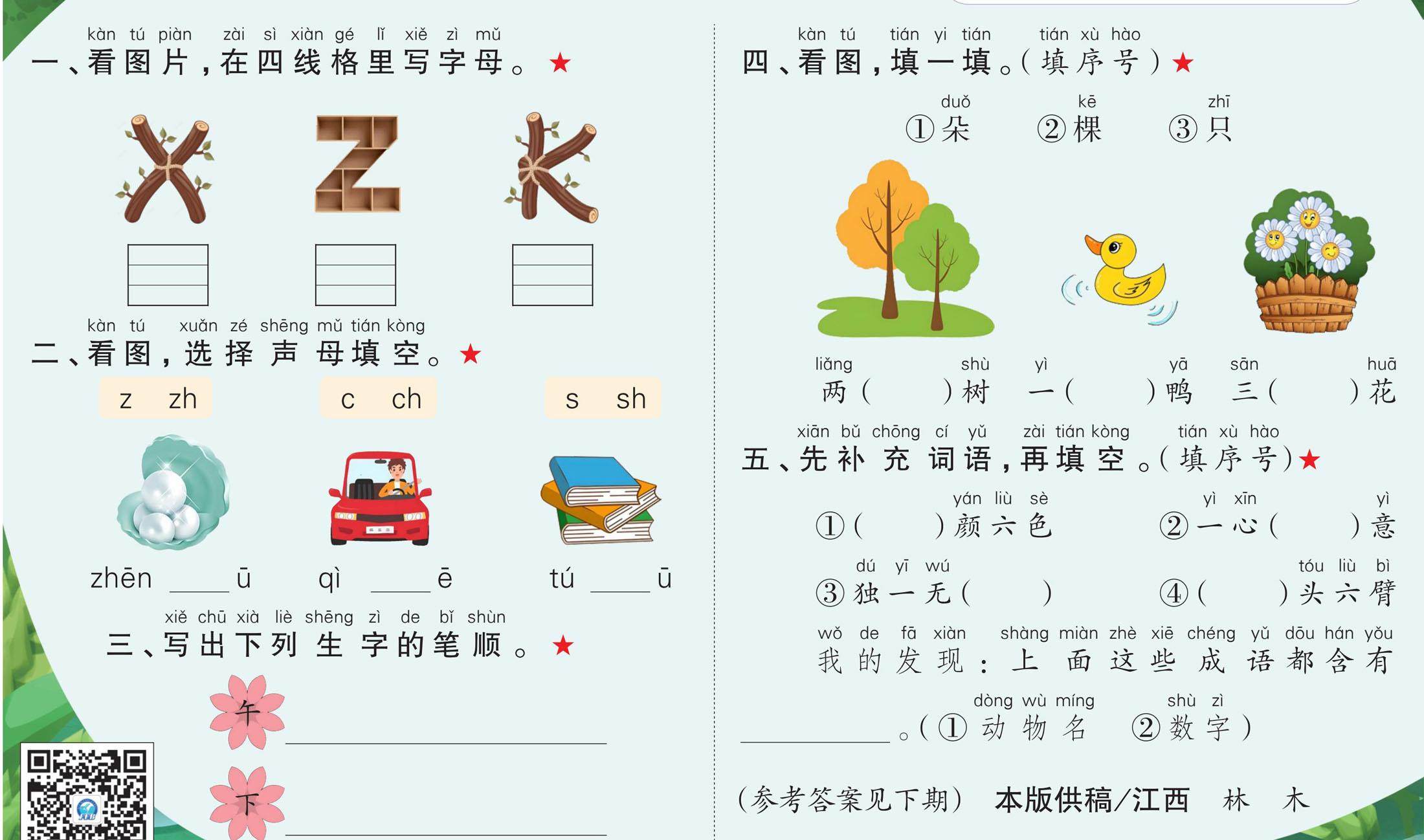 动dònɡ物wù园yuán里lǐ真zhēn有yǒu趣qù!小xiǎo朋pénɡ友you,一yì起qǐ走zǒu进jìn奇qí妙miào的de动dònɡ物wù世shì界jiè吧bɑ! 一、小xiǎo鱼yú排pái队duì。(按àn顺shùn序xù写xiě声shēnɡ母mǔ)(12分) 二、狮shī子zi识shí字zì。(看kàn图tú,用yònɡ“√”画huà出chū正zhènɡ确què的de音y