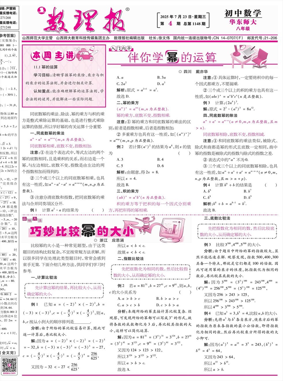 数理报·八年级数学华师大版