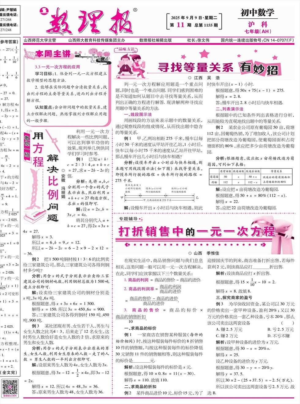 数理报·七年级数学沪科版