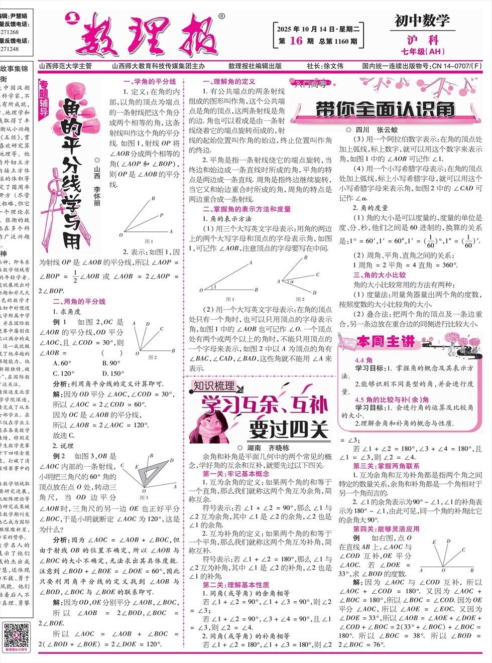 《数理报》是由山西省教育厅主管,山西师范大学主办,面向全国发行的中小学生理科教学辅导类报纸