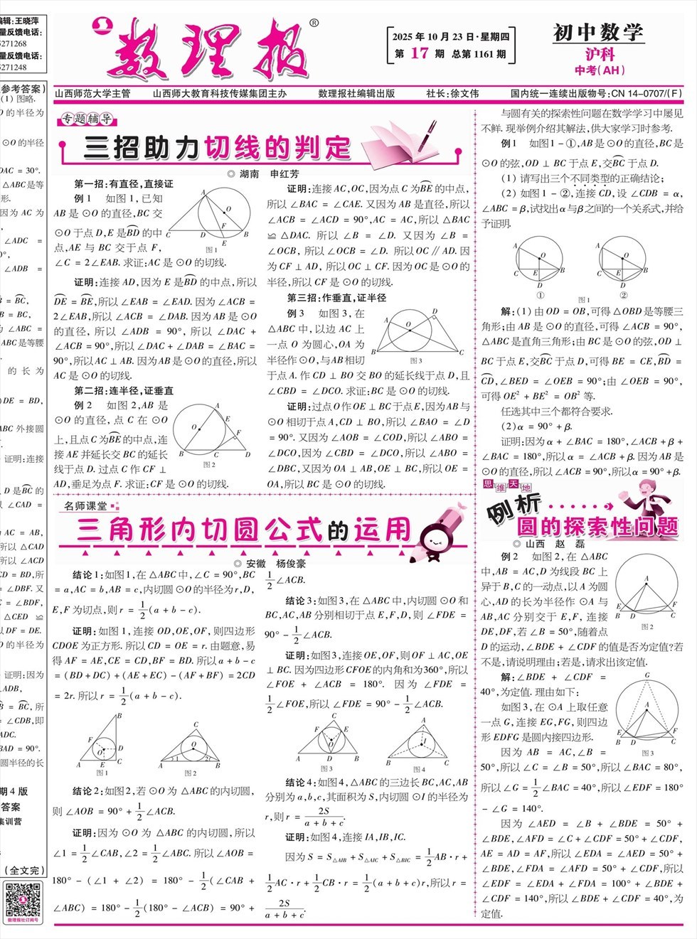 《数理报》是由山西省教育厅主管,山西师范大学主办,面向全国发行的中小学生理科教学辅导类报纸