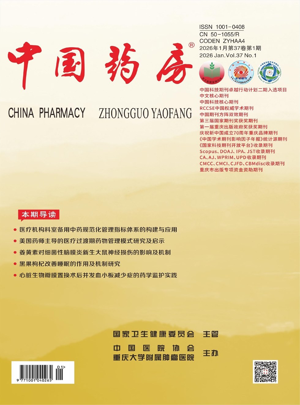 《中国药房》杂志是国家卫生健康委员会主管、中国医院协会、重庆大学附属肿瘤医院主办的国家级、国内外公开发行的药学学术类刊物。