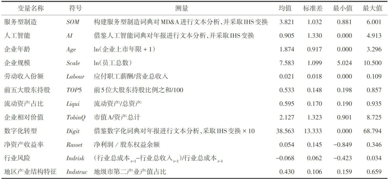 摘要:人工智能能否推动制造业企业发展服务型制造是理论界和实践界广泛关注的前沿话题。采用机器学习下的文本分析方法重新测度服务型制造,同时匹配2008—2022年中国A股上市制造业企业样本,实证检验人工智能对服务型制造的影响。研究发现,总体上企业发展服务型制造过程中不存在“人工智能悖论”,即人工智能显著正向促进服务型制造。机制分析表明,人工智能通过降低劳动要素技能溢价实现成本降低、通过提升数字技术创新能力实现效率提升,推动企业发展服务型制造降本增效,展示了“人工智能 $$ 动态能力 $$ 成本降低 + 效率提升→服务型制造”的动态演化路径。异质性检验表明,服务型制造呈现较明显的政策导向特征,而人工智能也更显著地促进了政策导向型服务型制造;相比管制性行业,人工智能对服务型制造的影响在竞争性行业更为突出。研究结论提供了人工智能与服务型制造内在关联的微观证据,对数智化时代中国企业高质量转型升级具有重要的理论和实践启示。