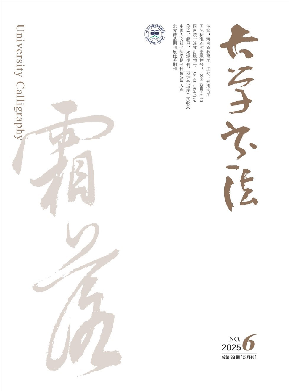 创刊于2019年,是经国家新闻出版署批准的全国首家高校独立主办的书法专业学术期刊。办刊宗旨为刊载书法教育教学理论,促进书法文化研究交流,展示师生优秀书法作品,推动高校书法学科建设,提高书法人才培养水平,传承和发扬中华优秀传统文化。