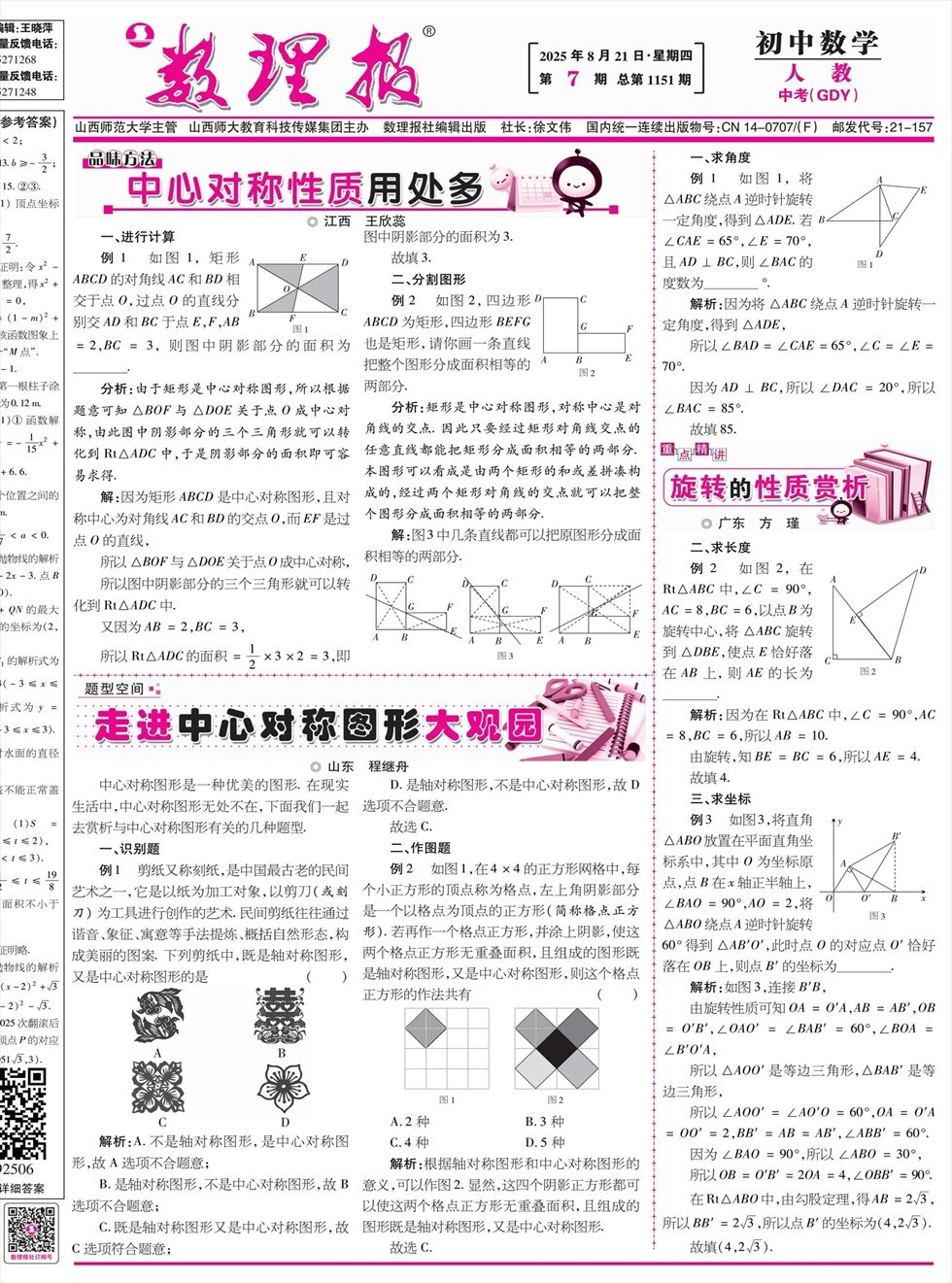 《数理报》是由山西省教育厅主管,山西师范大学主办,面向全国发行的中小学生理科教学辅导类报纸