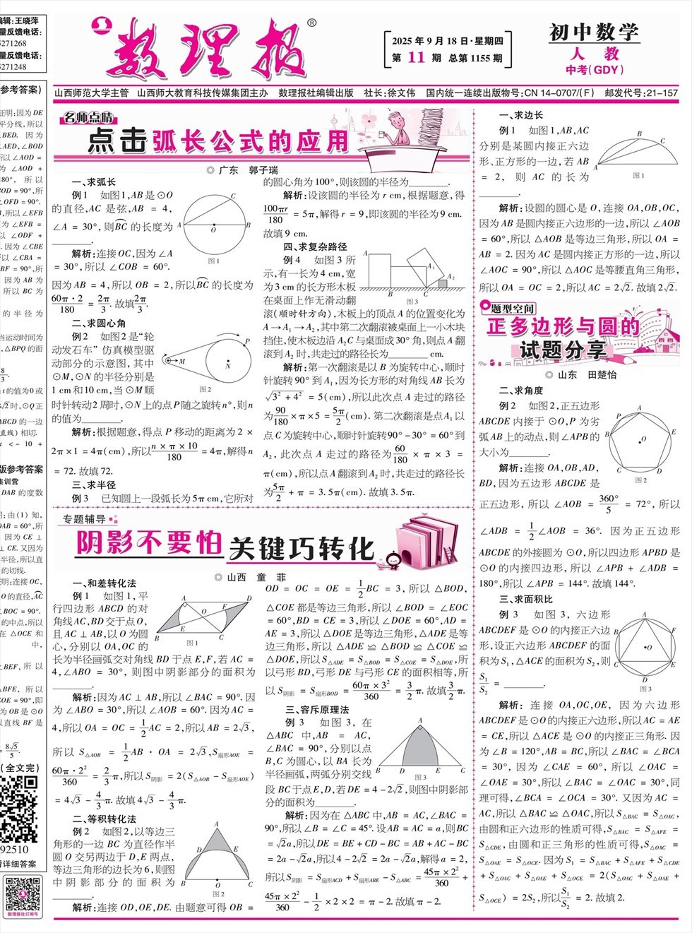 《数理报》是由山西省教育厅主管,山西师范大学主办,面向全国发行的中小学生理科教学辅导类报纸